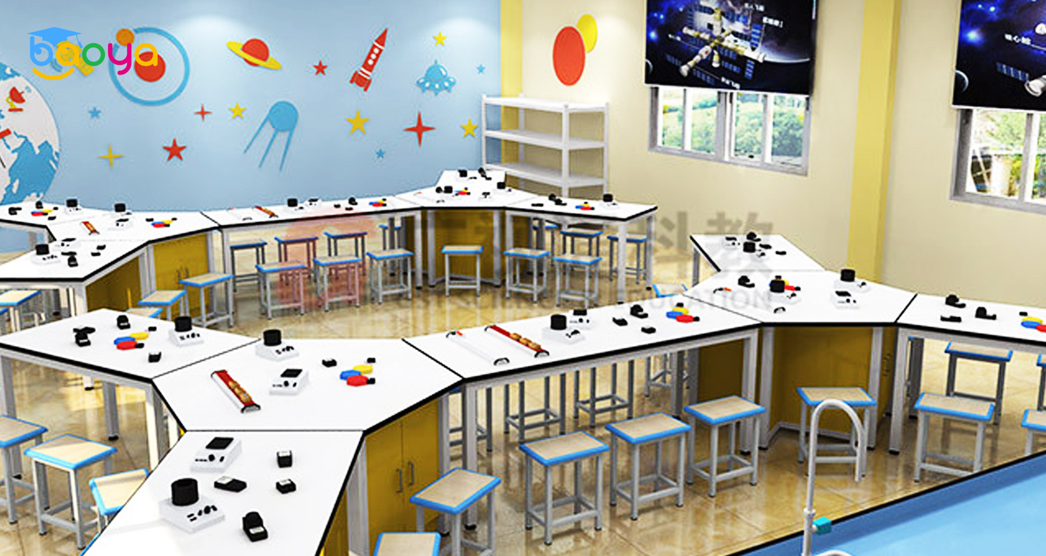 以国家最新科学教育教学政策为依据,根据《中小学校建筑设计规范》(GBJ99-86)国家标准的规定,通过配备创新型、智能化的实验设备,营造绿色环保、活泼自由、舒适安全的实验场景,有效激发学生兴趣与爱好,培养学生的科学素养。